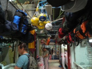 Buying a soccer ball in the market (or two or three) is a great way to interact with the locals — you go from being detached observer to active participant who has a wonderful excuse to interact with people. It gives you the opportunity to practice (or mangle) the language if you speak a few words of it. If you don’t, you get to play charades, which amuses the locals to no end. When I lack the vocabulary, I’ll pantomime a ball, then kick my foot and say “Messi” or “Barcelona.” The locals laugh but they always seem to catch my drift and point us in the direction of the soccer ball vendors.