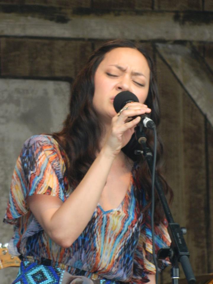 Treme Filming at Fais-Do-Do Stage. We had just finished watching the Jambalaya Cajun Band when the announcer asked people to stay put and serve as extras while they filmed a scene for next season’s Treme. A stage-hand then put up a new sign at the edge of the stage: Annie T & the Bayou Cadillacs. I couldn’t believe it — art imitating life was now life imitating art. Treme is a fictional TV series that depicts life in New Orleans post-Katrina. Now one of the characters from the show, Annie T, was going to actually be performing a couple of songs at Jazz Fest so that they could include it in an upcoming episode. It was too bizarre! But here came actress/musician Lucia Micarelli, violin in hand as she strode up to the mic. She first played a fast song on fiddle and then sang a heartbreakingly beautiful ballad entitled “This City Will Never Drown.” At the end, I wasn’t cheering only because I got to serve as an extra for my all-time favorite show (well, it’s the ONLY one I’ve watched in seven years…) but also because her performance was so riveting. Annie/Lucia — you ROCKED it!