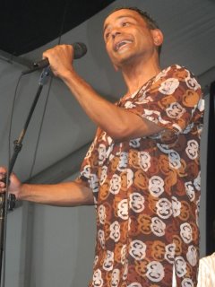John Boutté at the Jazz Tent. Don’t let this man’s diminutive size — he’s several inches short of 5 feet — fool you: he’s got a giant soul, an expansive spirit and an enormous vocal genius that is capable of expressing the most nuanced emotions through his incredible phrasing. Before watching his set I had only known Boutté as the writer and singer of the up-tempo theme song for the HBO series Treme. But through his sensitive interpretations of These Blue Days and Lush Life I learned of his gift for ballads. And the last fifteen minutes of his performance were among the best I have ever heard from ANY singing artist: his rendition of Leonard Cohen’s classic, Hallelujah, (he included all the verses) was so profound I was covered in goose-bumps and tears. (I wasn’t the only one — I looked around and saw many others in the overcrowded tent dabbing at their eyes…) After he recovered from the emotion of that song (he, too, broke down afterwards), he donned a flashy jacket, scooped up a tambourine and led everyone in a joyous version of Treme that had people singing and dancing in the aisles.