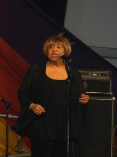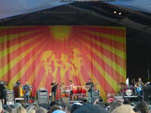 Mavis Staples at the Gospel Tent. Mavis, former lead singer of the Staples Singers, is in her early 70s now, but she still has “the voice,” the one that sounds like grits and grease and gravel all run together. She was supposed to be performing her set with Levon Helm, the former lead singer of The Band, but Helm lost his battle with cancer just a couple of weeks before Jazz Fest. Mavis brought the overflow audience to its feet with her soulful, impassioned rendition of Helm’s hit song, “The Weight,” (better known as “Take the Load Off Fanny”) and reduced everyone to simultaneous cheers and tears when she raised her fist to the sky after finishing, wiped the tears from her own cheeks and yelled, “Levon Helm! Levon Helm!”